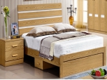 (1)贴面用材:采用优质防火E1级三聚氰胺板贴面;(2)封边用材:同色封边;(3)五金配件:优质五金配件,均经过酸洗、磷洗等防锈处理。台面、小柜顶板台脚厚度:2.5厘米,其部分1.6厘米。床头柜1个