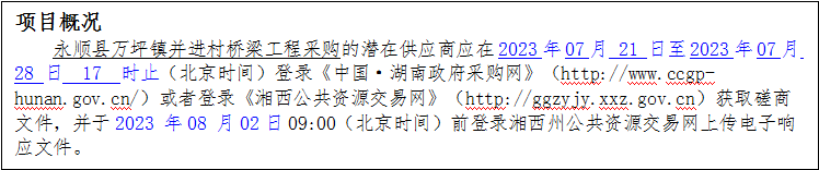 1、采购项目名称:永顺县万坪镇并进村桥梁工程