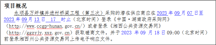 1、采购项目名称:永顺县万坪镇并进村桥梁工程(第三次)
