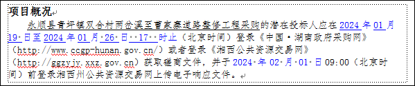 1、采购项目名称:永顺县青坪镇双合村两岔溪至曹家寨道路整修工程