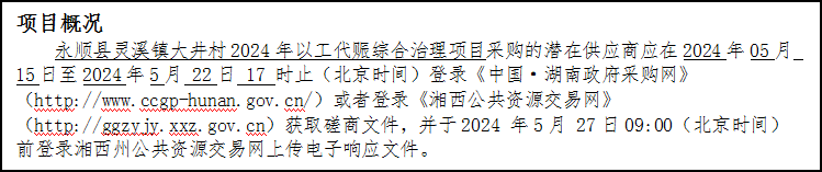 永顺县灵溪镇大井村2024年以工代赈综合治理项目磋商邀请
