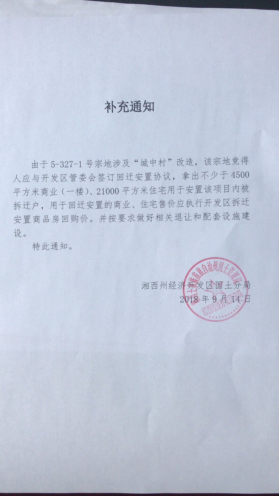 湘西经济开发区管委会(5-327-1)地块国有建设用地使用权(补充通知 )