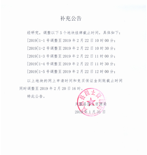 凤凰县国土资源局[2019]1-3号地块国有建设用地使用权(变更公告)