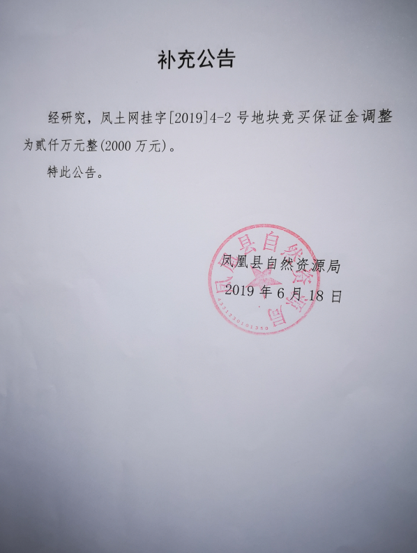 凤凰县自然资源局[2019]4-2号地块国有建设用地使用权(变更公告)