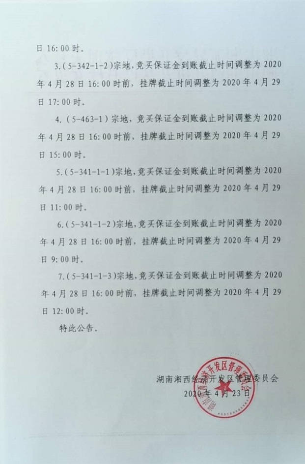 湘西经济开发区管委会(5-463-1)地块国有建设用地使用权(延期公告)
