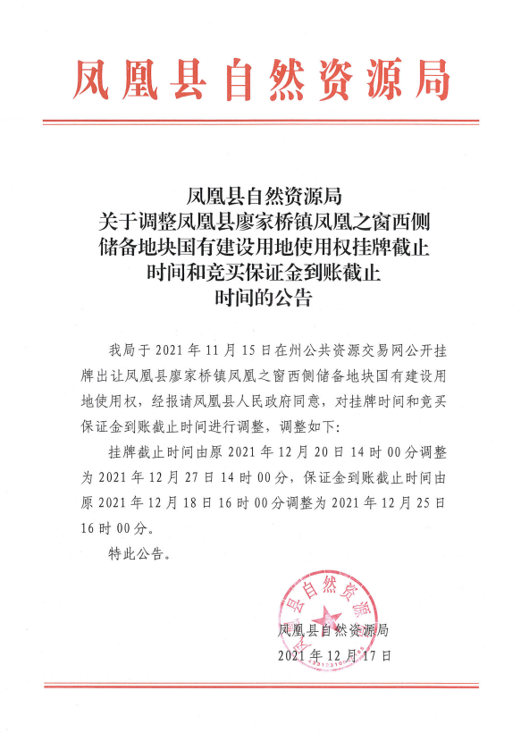 凤凰县廖家桥凤凰之窗西侧储备地块延期公告.pdf
