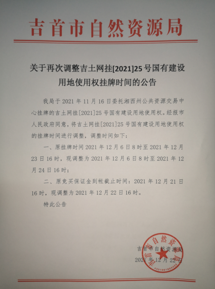 吉土网挂[2021]25号(延期公告)