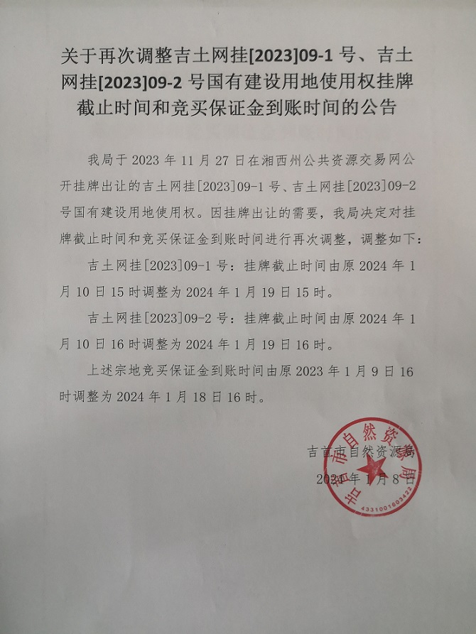 吉土网挂[2023]09-1号(延期公告)